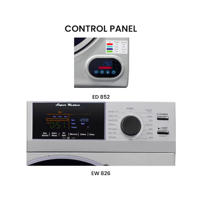 - Stackable – The EW 826 washer and the ED 852 dryer are designed to be stackable for maximum space savings.