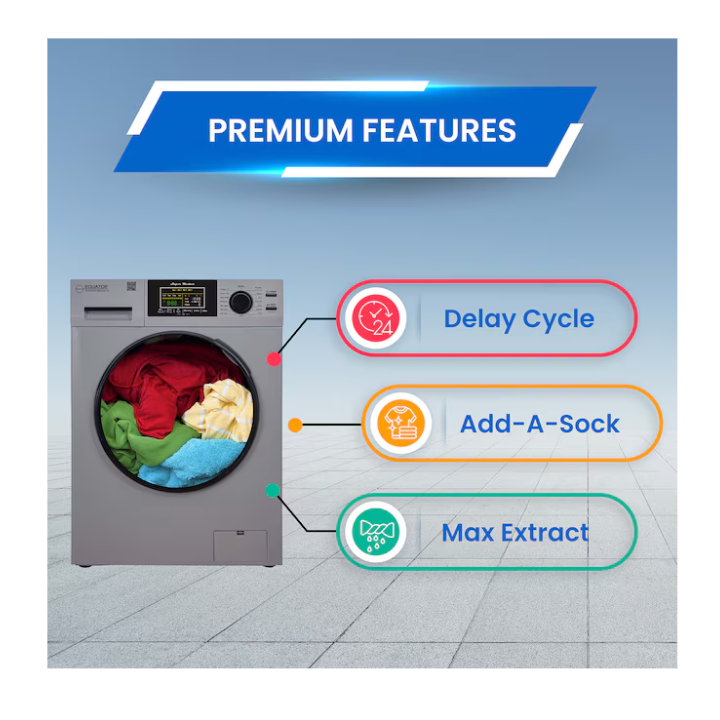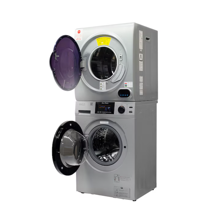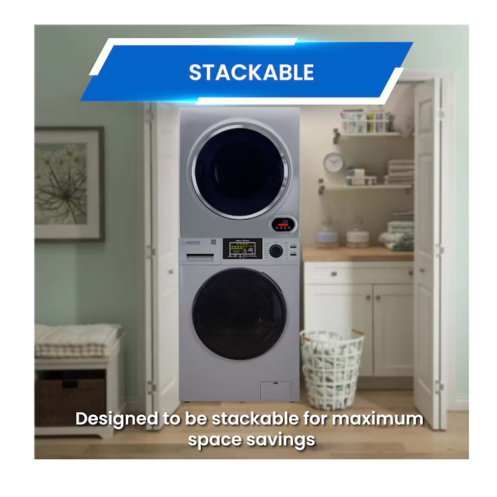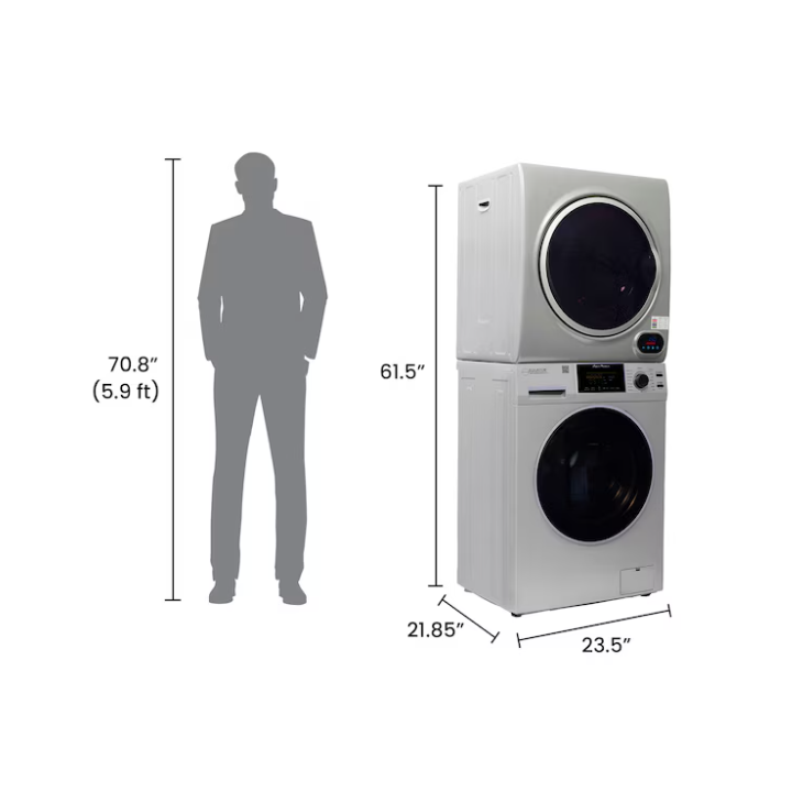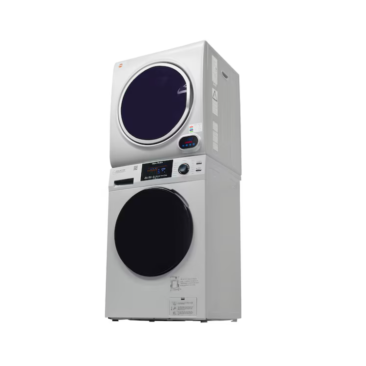 Experience a new level of innovation when doing laundry in any sized space with the Equator 15lbs White Super Washer 3.5 cu. ft. White Compact Short Dryer – Stackable Set. Designed to fit in almost any compact interior — including studio apartments, RVs, tiny homes, and vacation rentals — this curated set is the ultimate laundry solution. The 826 model washer measures 33.5 x 23.5 x 21.85 (HxWxD in inches), and the 852 model dryer measures 28 x 24 x 22 (HxWxD in inches). When stacked as intended, even more space can be saved. You can also save time when running the washer and dryer at the same time. Wash any item with the utmost confidence thanks to this model’s impressive 12 custom wash cycles, including ECO, Baby, Delicate, Allergen, and more. Need to eliminate pet hair from fabrics? Do so in no time when using Pet Cycle. Washing and Drying can be done at the same time since both units are separate.Other top features include Foam Control, Child Lock, Touch Buttons, an Anti Bacterial Drum Baffle, and much more. When it is time to dry your clothing and fabrics, enjoy features such as Sensor Dry, Digital Controls, Five Dry Cycles (featuring Hot, Time Dry, and Warm), a Stainless Steel Drum, and a Door Safety Switch.