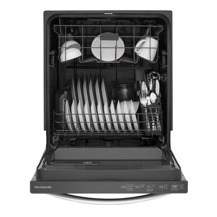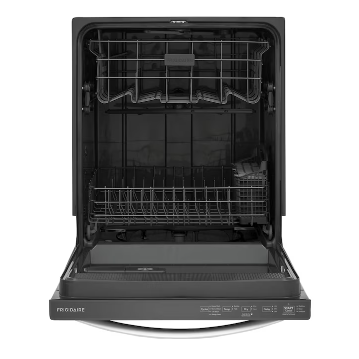 The Frigidaire 24 in. built-in dishwasher offers triple the cleaning power giving your dishes a more effective clean with our three spray arms that achieve better water coverage. Plus, enjoy an enhanced dry with MaxDry, which delivers better results reducing the need for towel drying. This quiet dishwasher (52 dBA) also includes DishSense Sensor Technology, is Energy Star certified.
