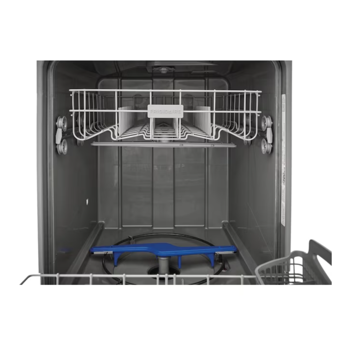 The Frigidaire 24 inch built-in dishwasher offers a complete clean with the 5 level wash system, featuring an upper spray nozzle, middle spray arm, and lower spray arm. Reduce energy use with the no heat dry option and clean 12 place settings in one cycle.