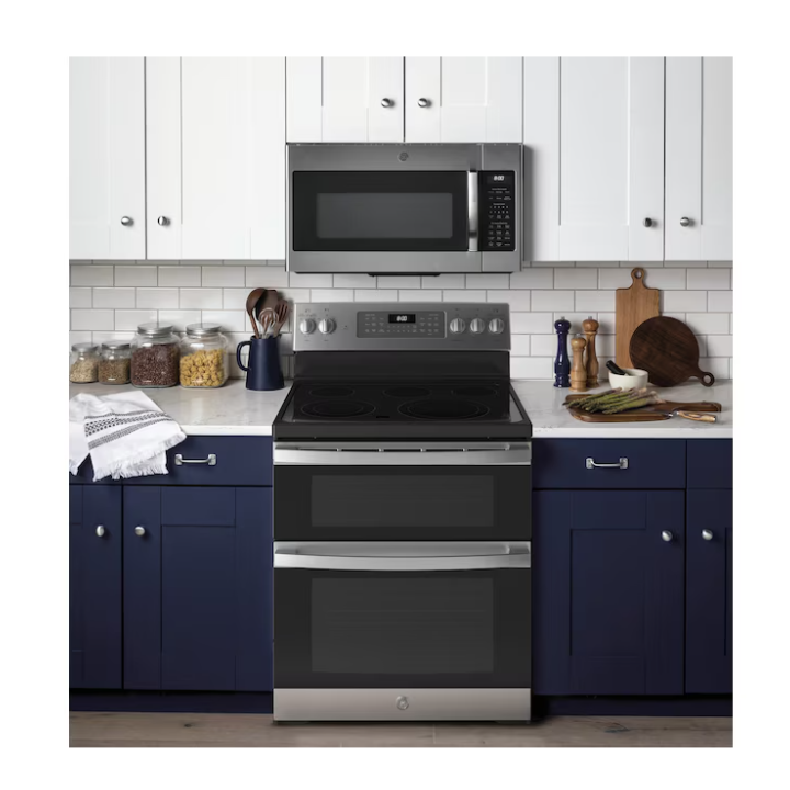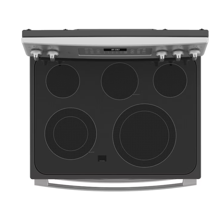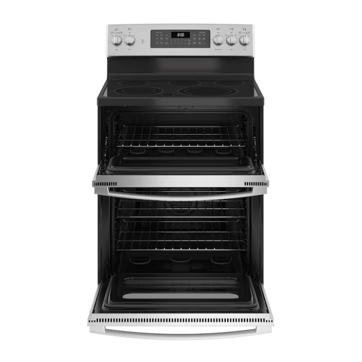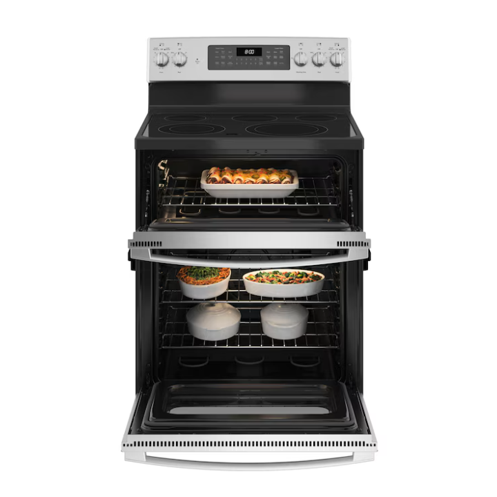 March 13, 2026GE 30-in Glass Top 5 burners 4.4-cu ft / 2.2-cu ft Air Fry Convection Oven Freestanding Double Oven Electric Range (Stainless Steel)