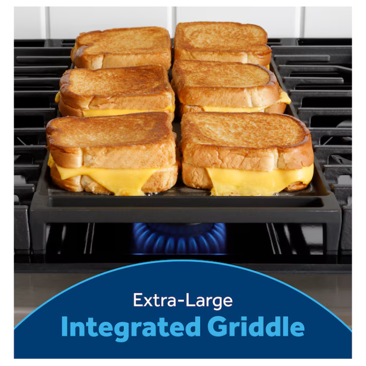 - Edge-to-Edge Cooktop – a large cooking surface gives you extra room for pots and pans of all sizes and lets cookware move easily from burner to burner