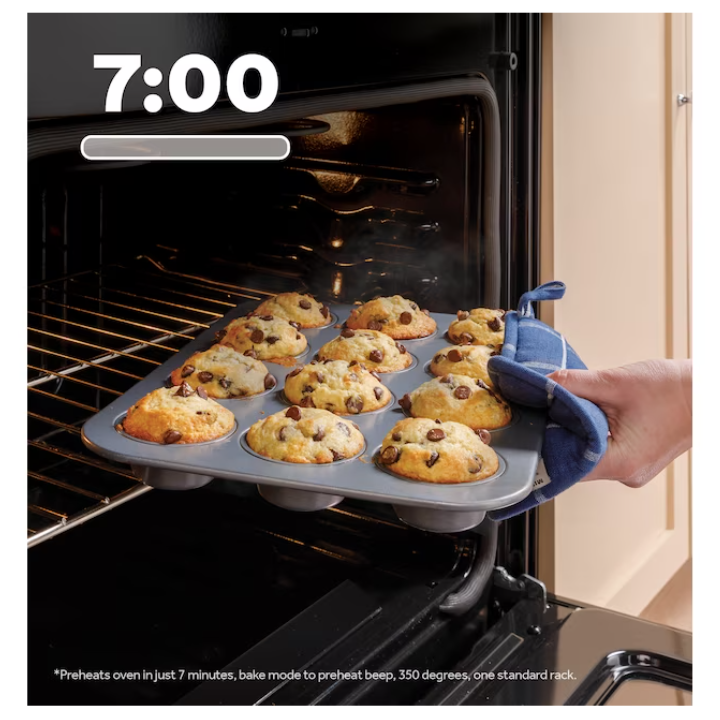 - Express Preheat – get food on the table quicker thanks to a fast preheat oven; in just 7 minutes, you have a perfectly preheated oven; preheats oven in just 7 minutes, bake mode to preheat beep, 350 degrees, one standard rack