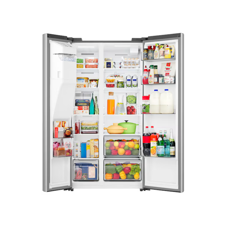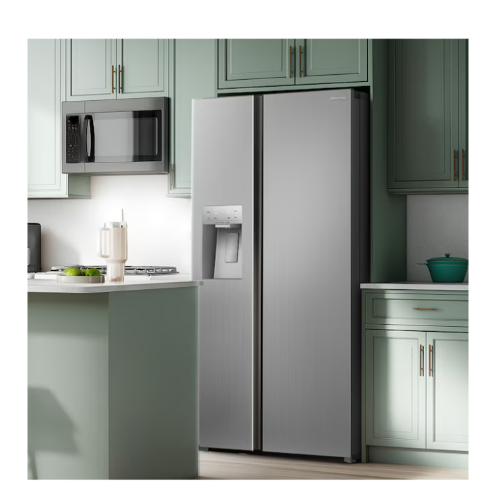 December 23, 2025Hisense 29.1-cu ft Standard-Depth 36-in Wide Side-by-Side Refrigerator with Ice Maker, Water and Ice Dispenser (Stainless steel)