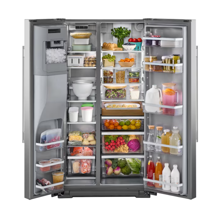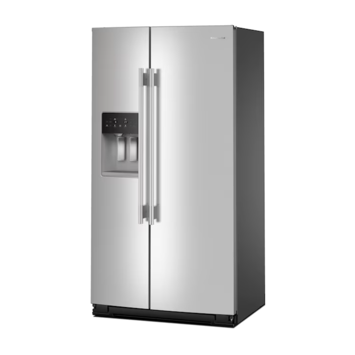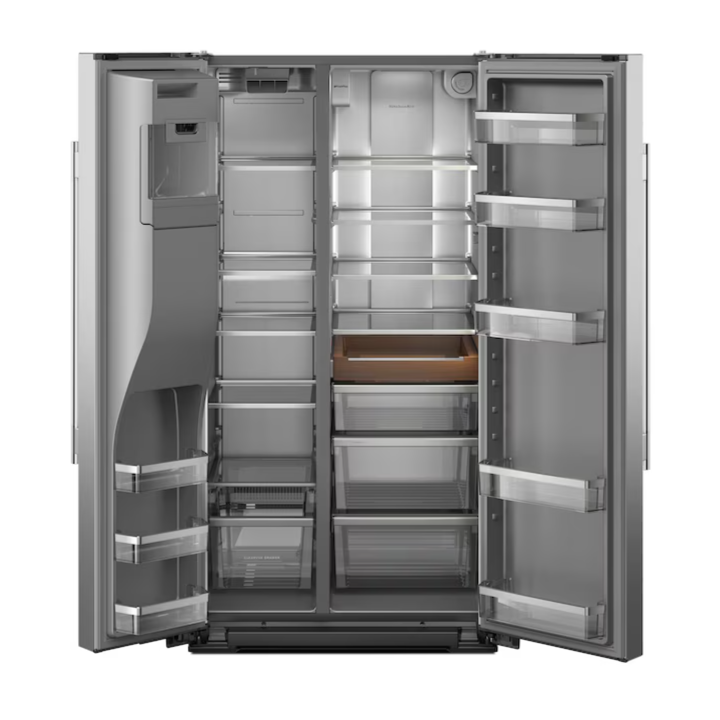 Make room for every grocery run and farmers market haul. This large capacity KitchenAid® side-by-side refrigerator has a Counter-Depth Design that fits with surrounding cabinetry to create a built-in appearance. The Signature Platinum Interior with Panoramic LED Lighting showcases your ingredients across nine removable shelves. And the Exterior Ice and Water Dispenser with Measured Fill allows you to select and dispense the exact amount you need in ounces, cups or liters.