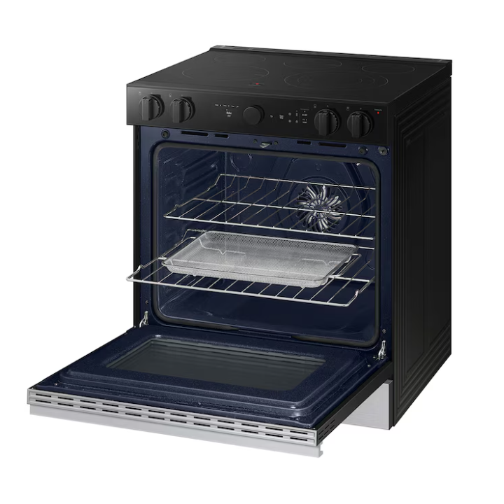 Samsung Bespoke 30-in Glass Top 5 burners 6.3-cu ft Air Fry Convection Oven Slide-In Electric Range ( Stainless Steel )