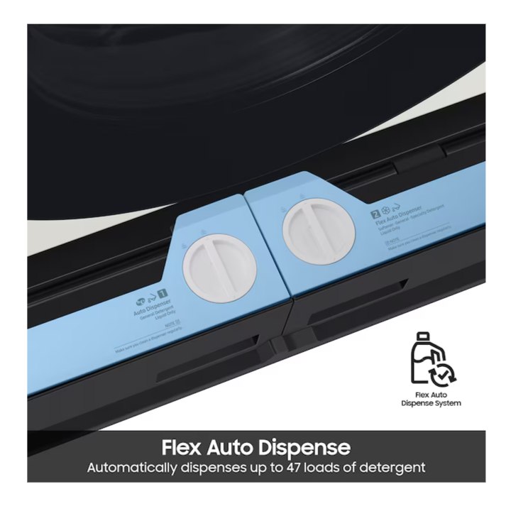 - Skip adding detergent: Automatically dispense up to 47 loads of detergent or flex one compartment to dispense up to 34 loads of softener and 25 loads of detergent with the Flex Auto Dispense System.
