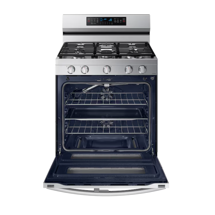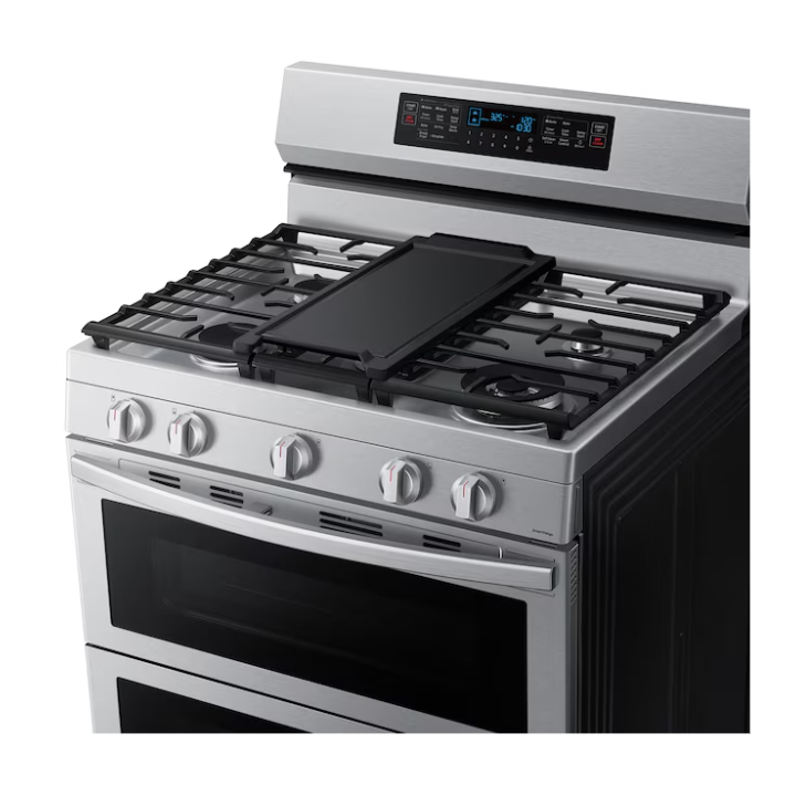 March 12, 2026Samsung Flex Duo 30-in 5 burners 3.4-cu ft / 2.5-cu ft Air Fry Convection Oven Freestanding Double Oven Gas Range (Fingerprint Resistant Stainless Steel)