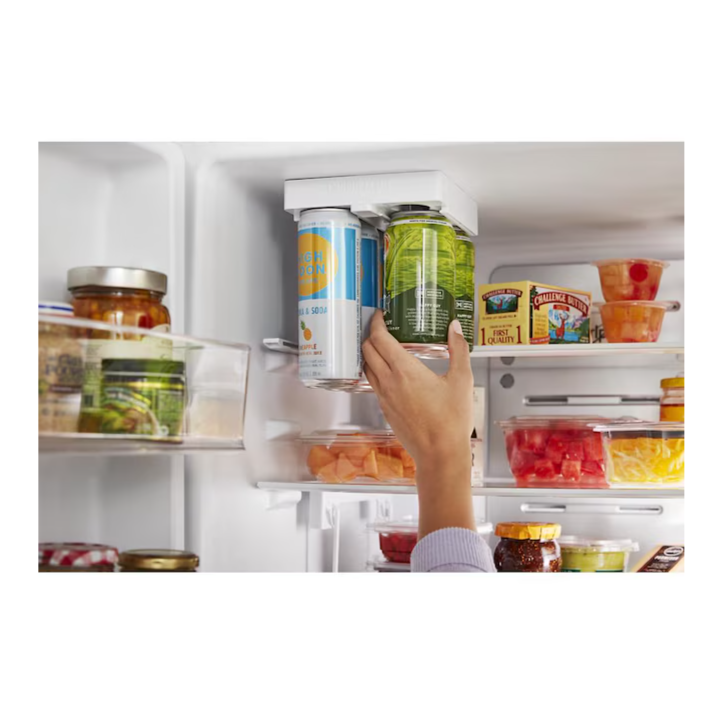 - Hang cans in Drink Loft™ overhead storage to free up shelf space