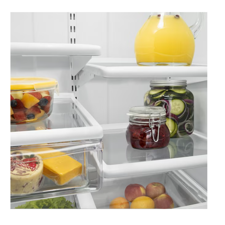 - Spillproof Glass Shelves help contain spills and prevent liquids from leaking below