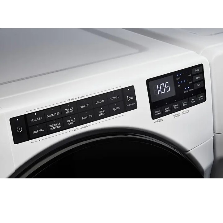 Clean regular-sized loads in as little as 25 minutes in this large capacity front load washer. Get help removing everyday stains with the washing machine Steam Clean Option. The Tumble Fresh Option keeps clean clothes fresh up to 12 hours after the wash cycle ends.