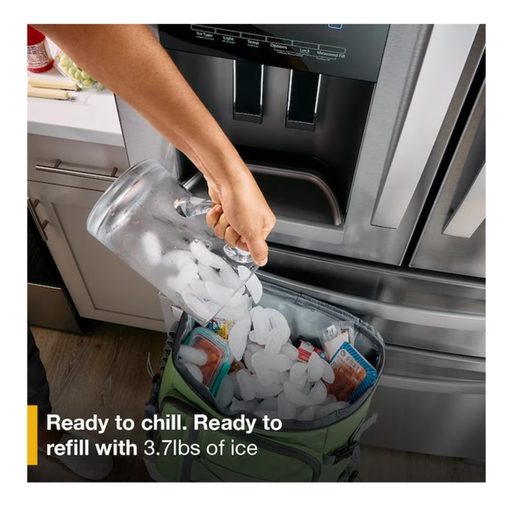 • With 3.7lb ice capacity, no French Door Bottom Mount Refrigerator in-door ice maker holds more ice