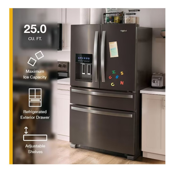 Whirlpool Standard-Depth 24.5-cu ft 4 -Door French Door Refrigerator with Ice Maker with Water and Ice Dispenser ( Black ) ENERGY STAR Certified