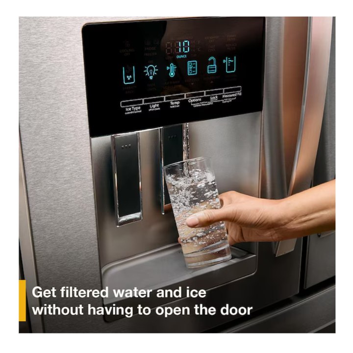 • Access fresh filtered water without ever opening the refrigerator door.